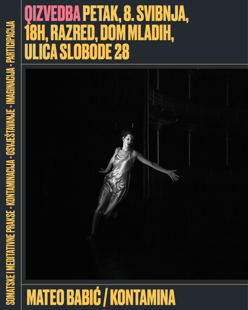 Petak, 8. svibnja s početkom u 18 sati na programu qFEST-a je izvedba Matea Babića. Izvedba se odvija u Razredu u Domu mladih.