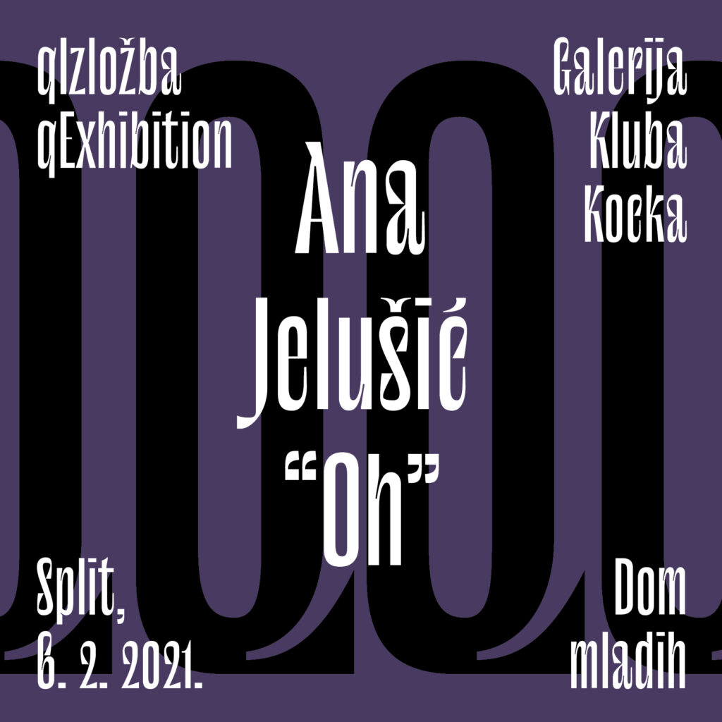 U sklopu programa qIZLOŽBE u subotu, 6. veljače u 19 sati u Galeriji Kluba Kocka, Dom mladih, Split, održat će se polusatna izvedba Oh Ane Jelušić. Referirajući se na popularnu kulturu, pjesmu Britney Spears – Hit me baby one more time, autorica razlaže proces učenja o tehnologiji vlastitog tijela i o mehanici reference.